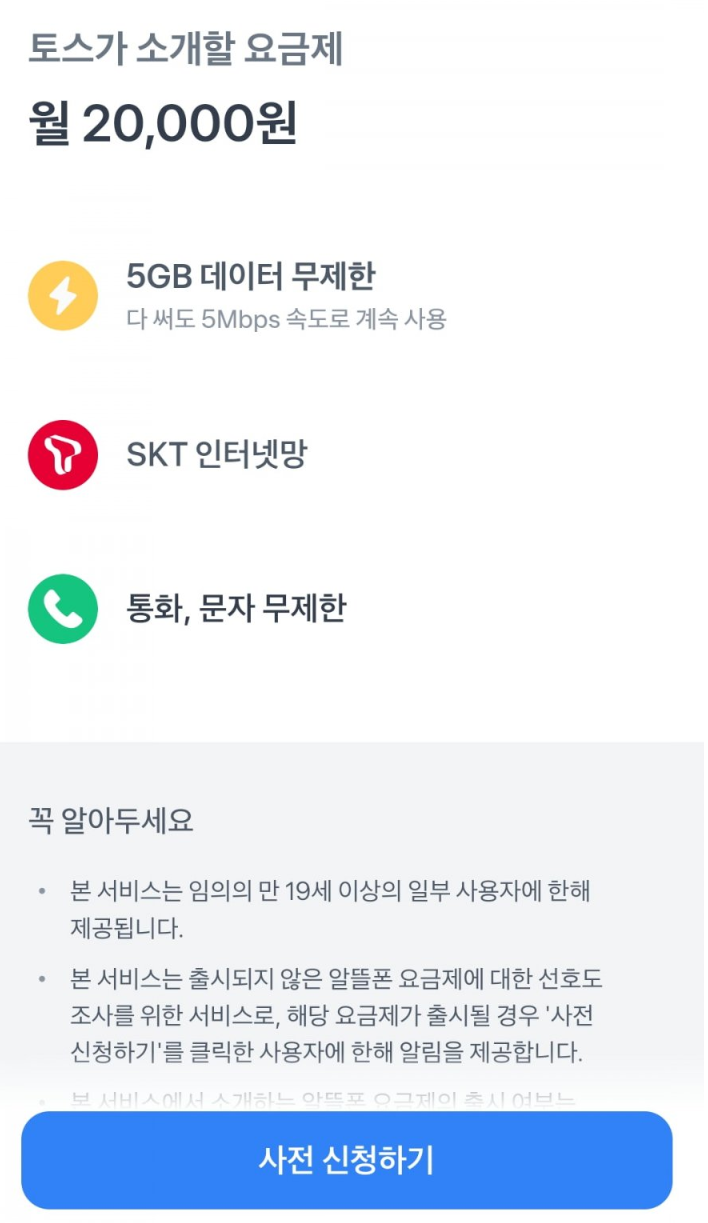 아마 이 전까지 토스의 행보를 봤을 때 아주 공격적인 마케팅으로 저렴한 요금제로 출시되지 않을까 생각합니다.